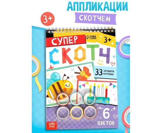 Активити - книга "Суперскотч", 6 цветов, 33 картинки