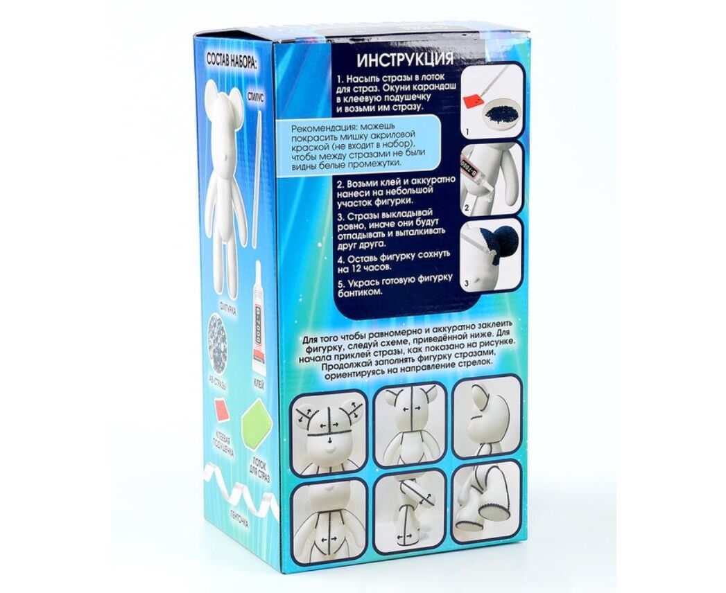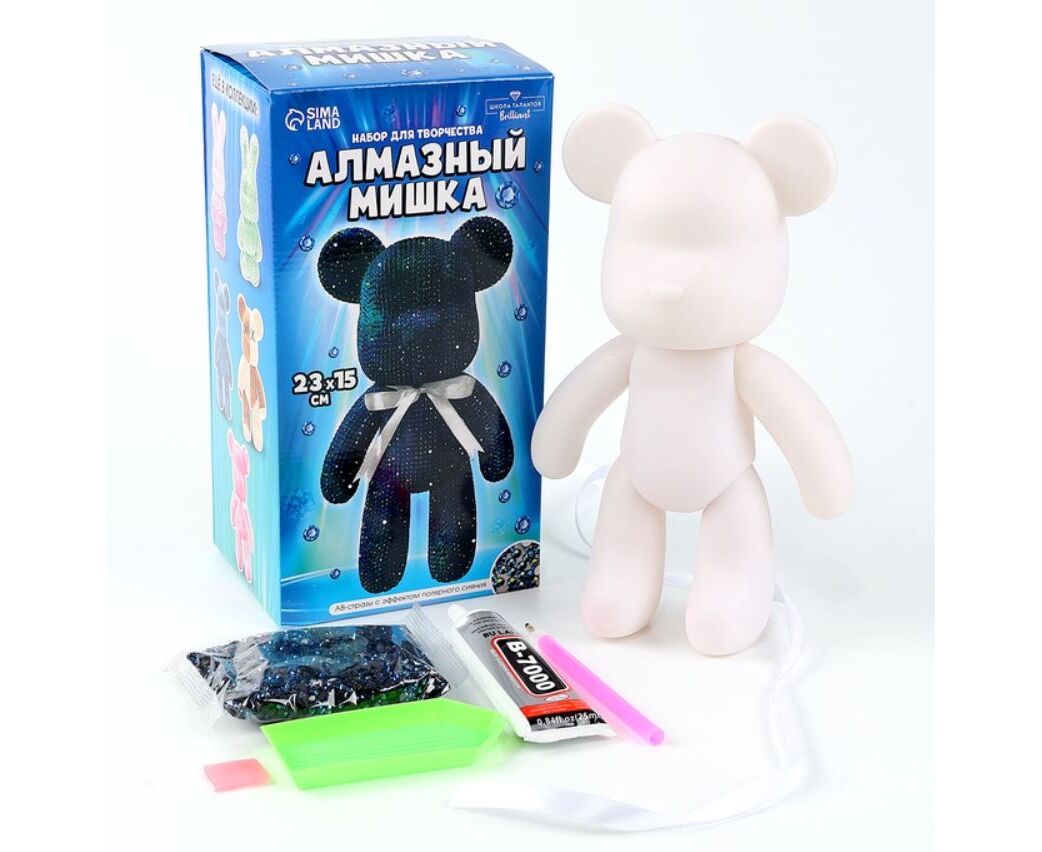Алмазная мозаика на фигурке "Медвежонок. 23 x 15 см", цвет синий