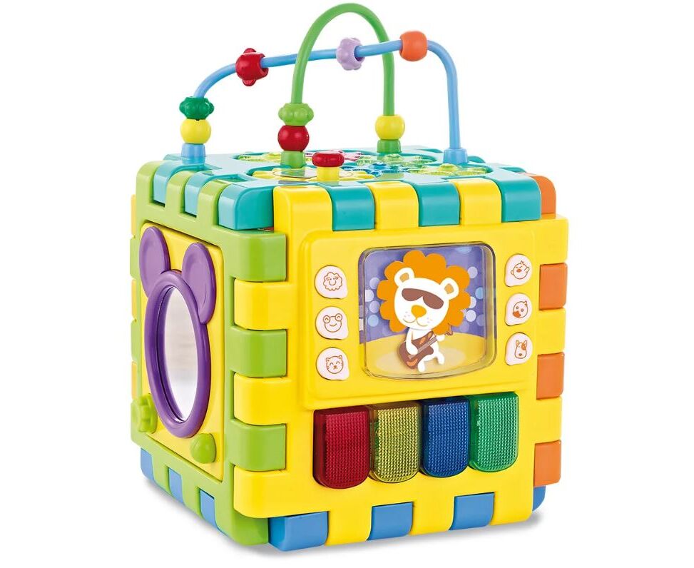 • пианино с динамической подсветкой клавиш проигрывает голоса шести животных, озвучивает цвета, имеет набор мелодий и обычный режим клавишного звучания, а танцующий в процессе игры лев точно позабавит ребенка.