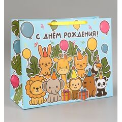 Пакет подарочный ламинированный "С Днём рождения", XL 49×40×19 см, горизонтальный