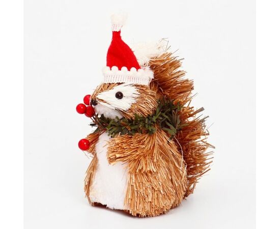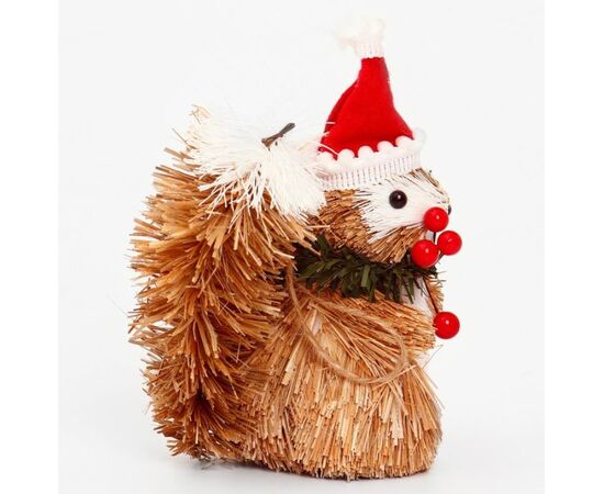 Елочная игрушка соломенная "Белочка в новогоднем колпаке"
