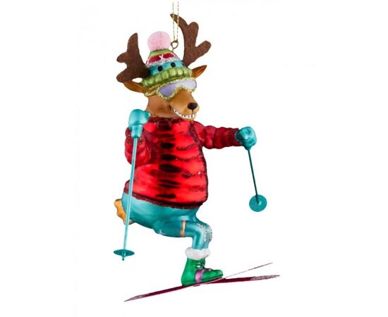 Елочная игрушка стеклянная "Олень на лыжах"