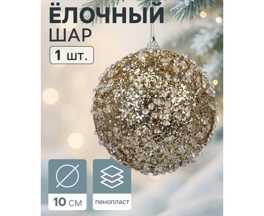 Елочный шар "Карнавал", цвет золотой, d=10 см