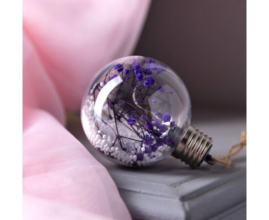 Елочный шар "Сиреневые сухоцветы" свечение теплое белое