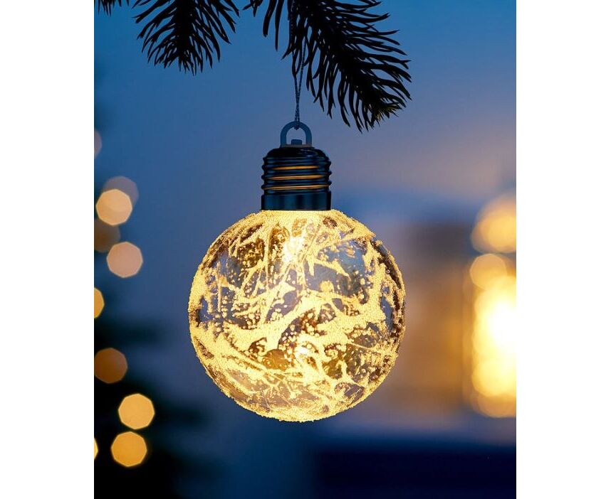 Елочный шар светодиодный "Серебристый", свечение теплое белое