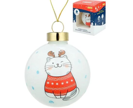 Елочный стеклянный шар "Котик в свитерке", 6 см