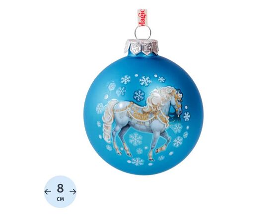 Елочный стеклянный шар "Лошадь", цвет голубой