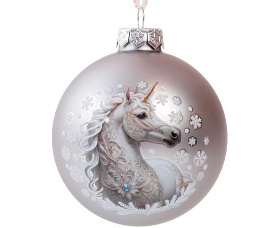 Елочный стеклянный шар "Лошадь", цвет серый