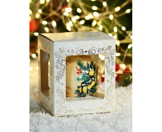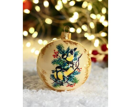 Елочный стеклянный шар "Синички", цвет бежевый, д=8 см