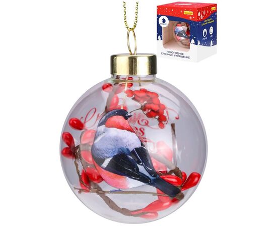 Елочный стеклянный шар "Яркий снегирь", 6 см
