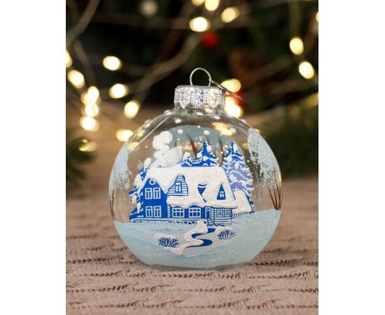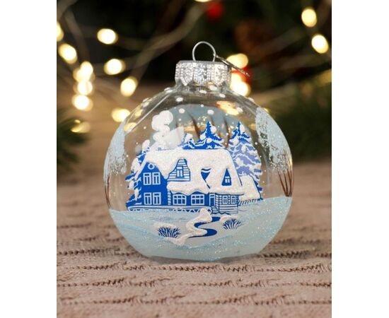 Елочный стеклянный шар "Зимний", прозрачный, д=8 см