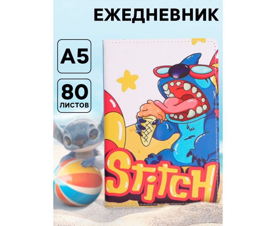 Ежедневник А5 "Стич на пляже", 80 листов