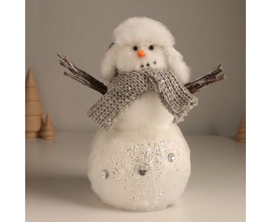 Фигура интерьерная "Снеговик в шапке-ушанке и шарфике", 24 см