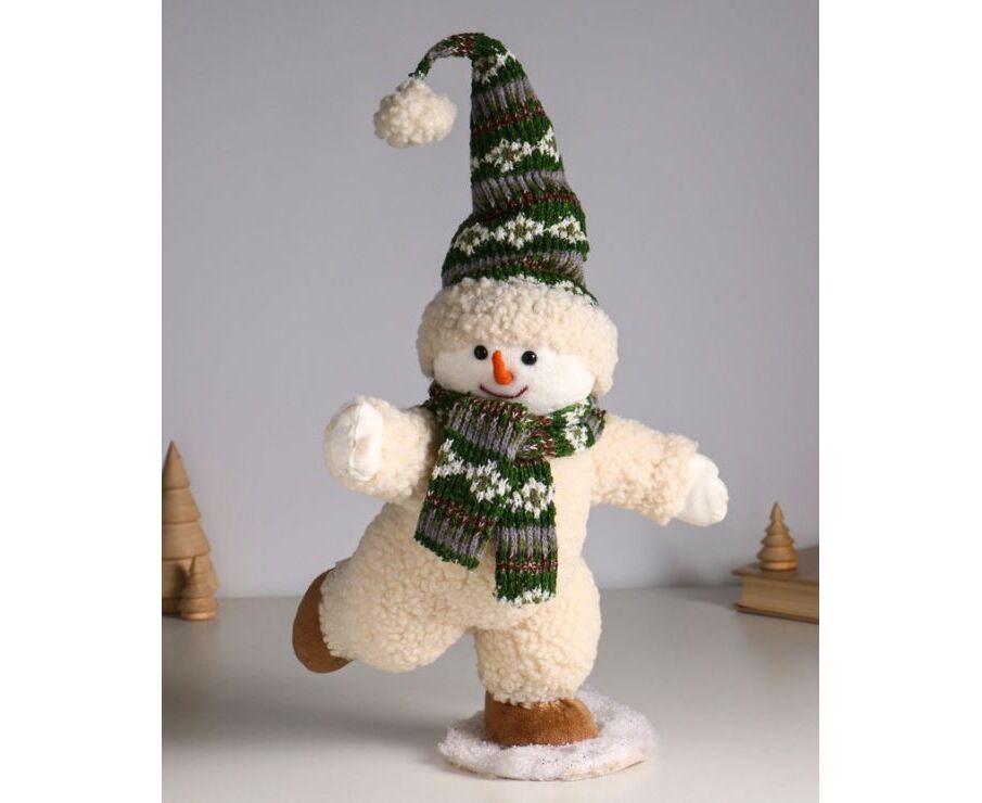 Фигура интерьерная "Снеговик в вязаном колпаке и шарфике"