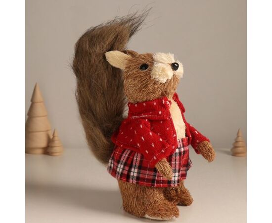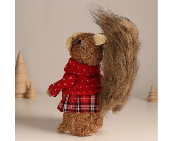 Фигура интерьерная соломенная "Белочка в клетчатой юбочке и свитере"