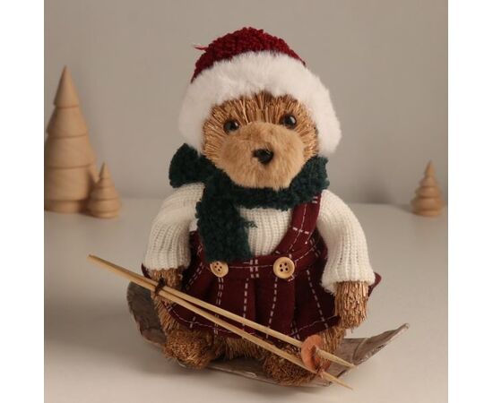 Фигура новогодняя "Мишка в зимнем сарафане на лыжах"