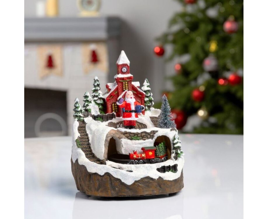 Фигура с подсветкой и музыкой "Поезд и Дед Мороз"