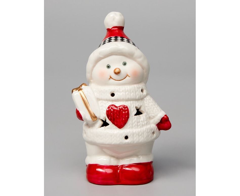 Фигура светодиодная керамическая "Снеговичок в свитере"
