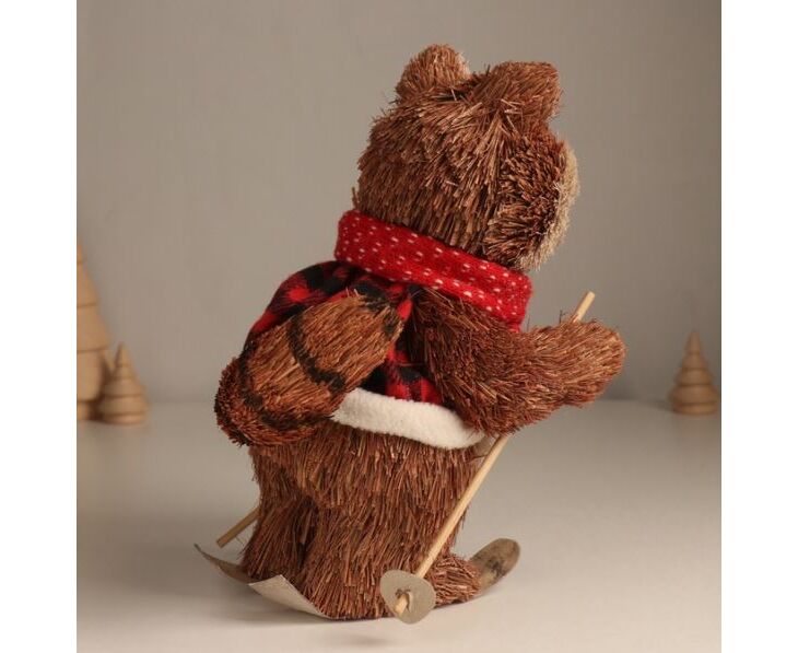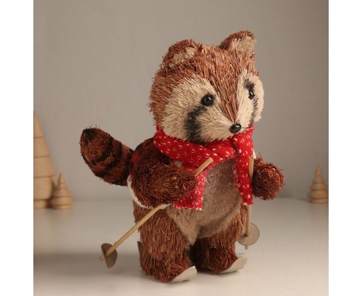 Фигурка интерьерная соломенная "Енот на лыжах", 21 см