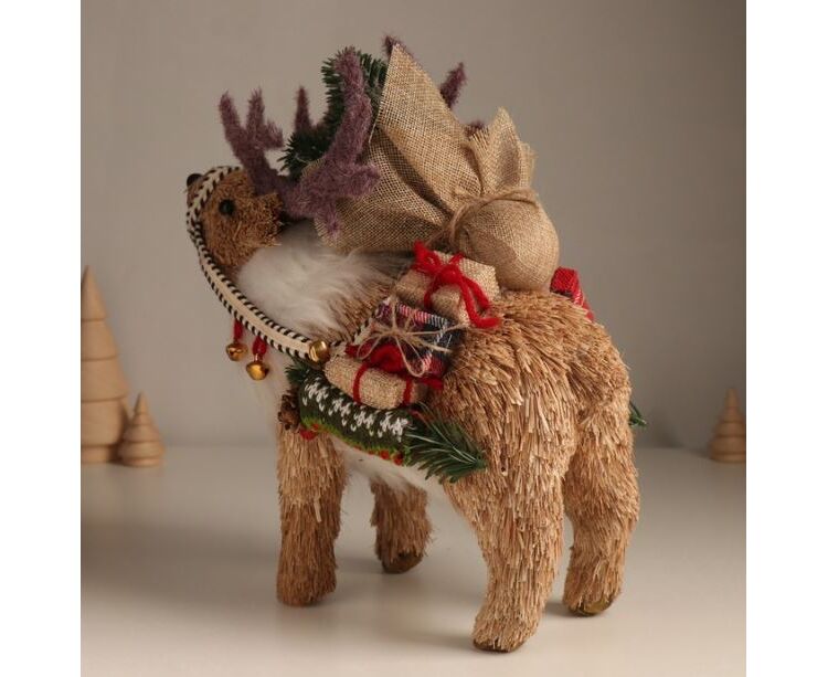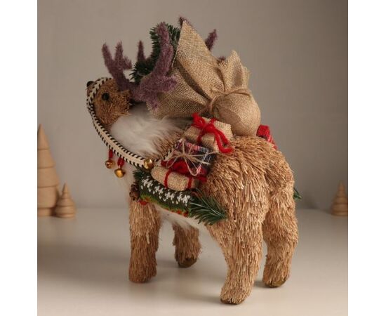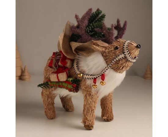 Фигурка интерьерная соломенная "Олень с подарками на спине"