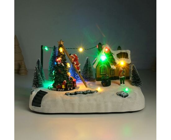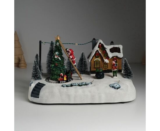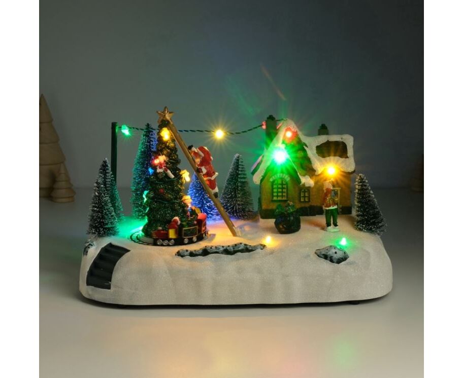 Фигурка крутящаяся с подсветкой и музыкой "Дед Мороз украшает елочку"