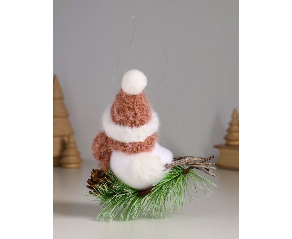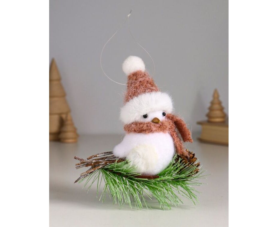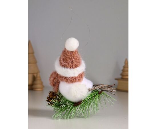 Фигурка новогодняя "Птичка в золотом колпаке на веточке ели"