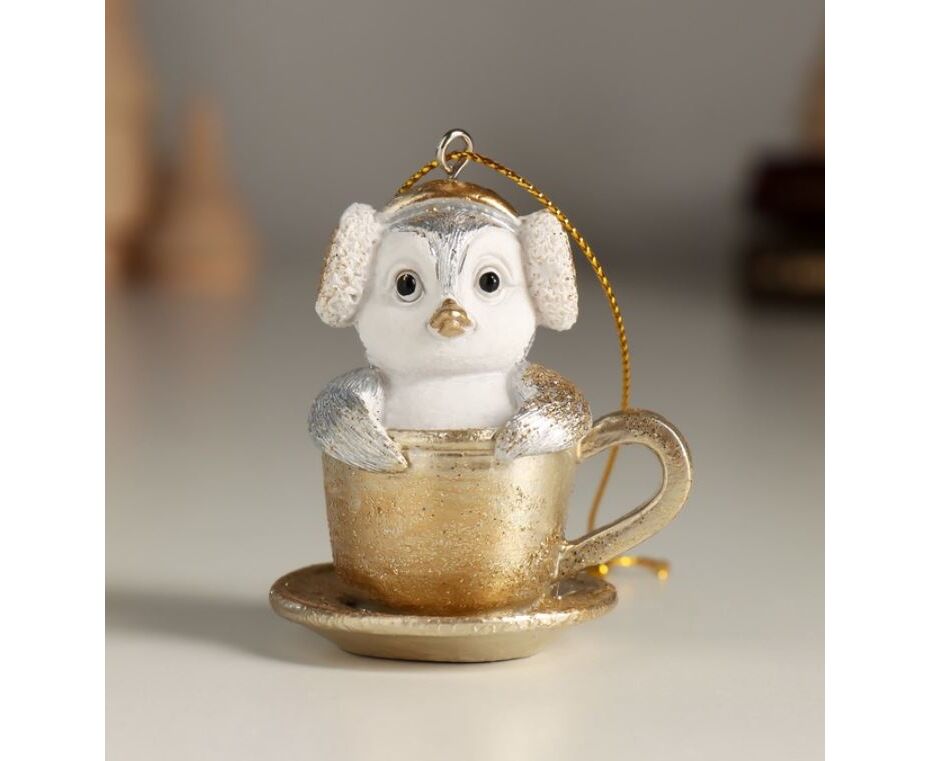 Фигурка-подвеска елочная "Пингвиненок в чашке"