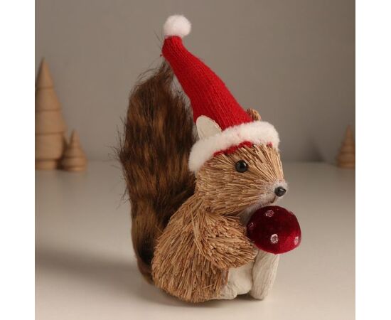 Фигурка соломенная для интерьера "Белочка с грибочком в колпаке"