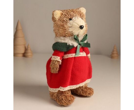 Фигурка соломенная для интерьера "Мишутка в платье"