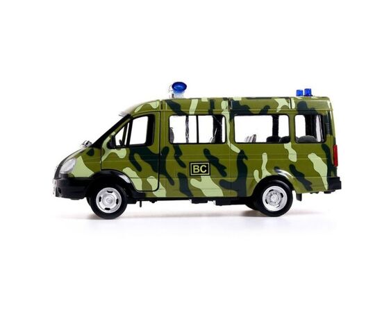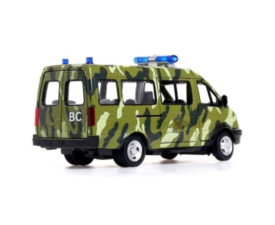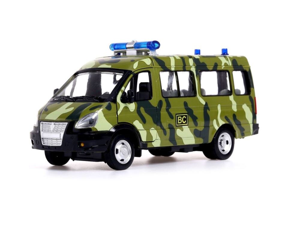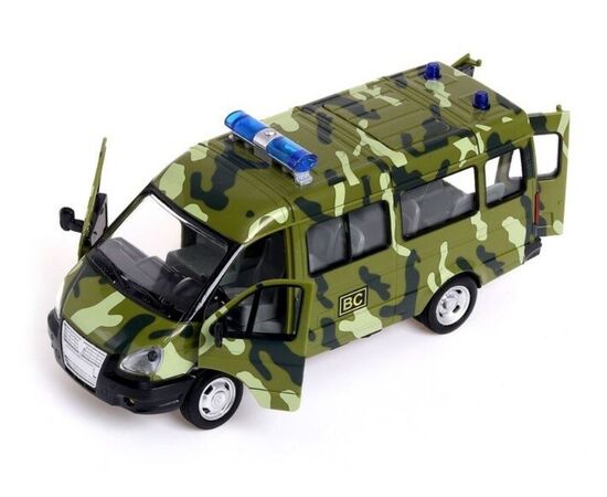 Окрываются передние двери и будка, светяться фары, звуки сирены, мотора, сигнализации.