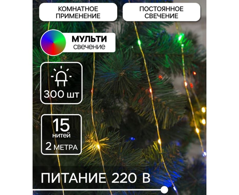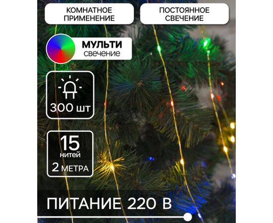 Гирлянда "Конский хвост", золотистая нить, свечение мульти, 15 нитей по 2 м