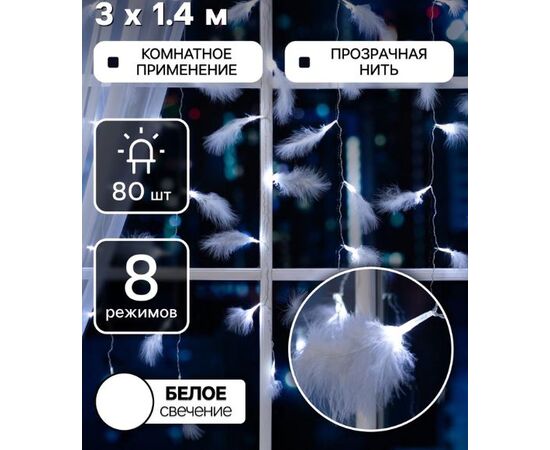 Гирлянда - занавес "Перья", свечение белое, 8 режимов