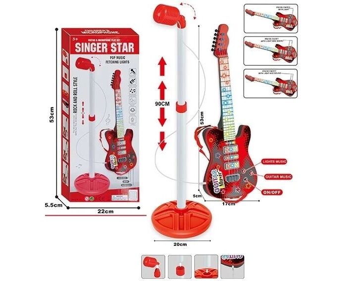 Гитара с микрофоном "Праздник звука", цвет бело-красный