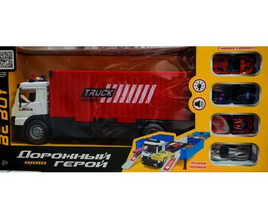 Грузовик трансформирующаяся в парковку + 4 машинки, цвет красный