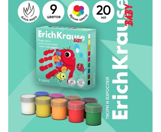 Гуашь пальчиковая, 9 цветов × 20 мл, ErichKrause Baby, с Алоэ Вера