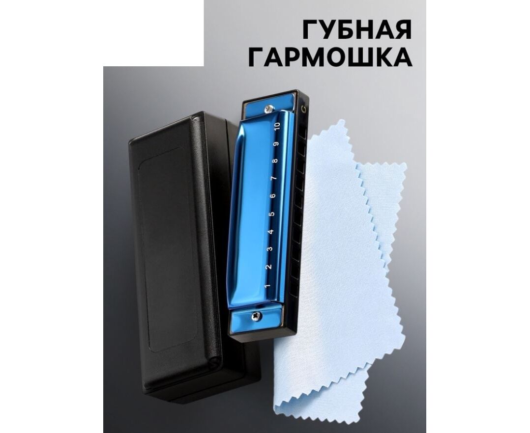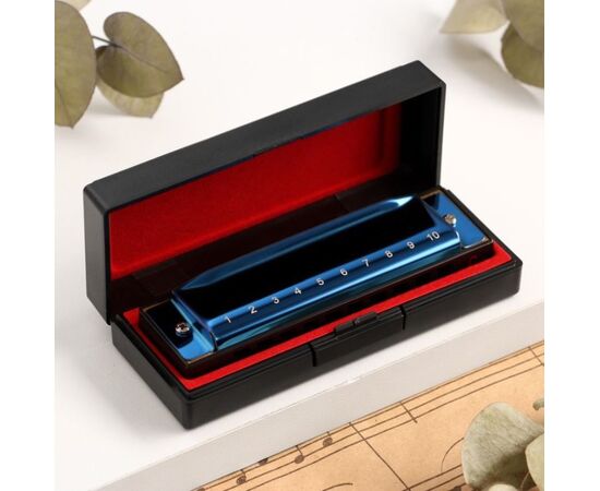 Губная гармошка T003 C диатоническая 10 отверстий синяя, с футляром
