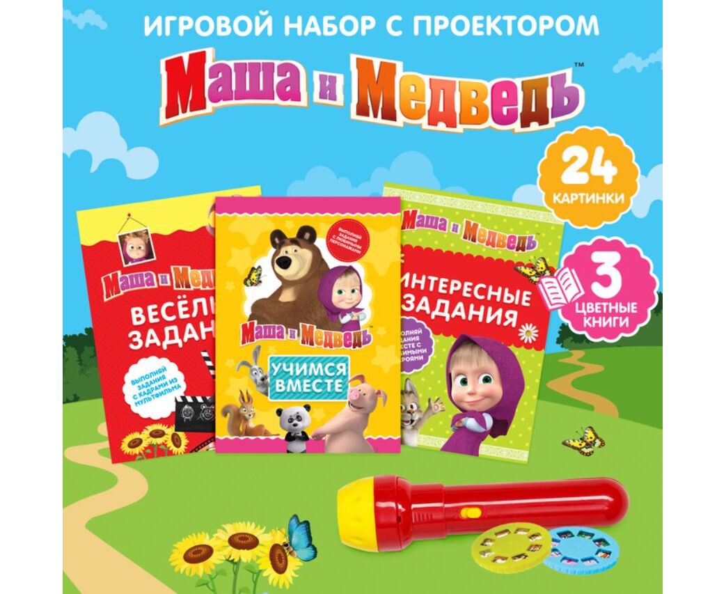 Игровой набор с проектором "Маша и Медведь" + 3 книжки