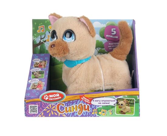 Интерактивная кошка с пультом-поводком "Синди", 22 см