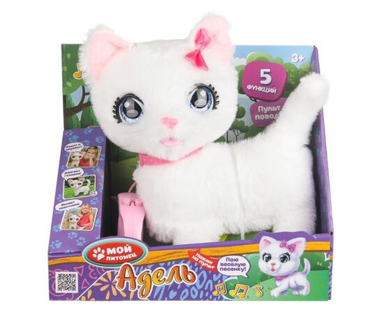 Интерактивная кошка с пультом-поводком "Адель", 25 см