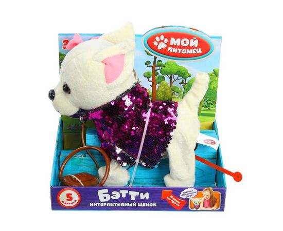Интерактивный щенок с пультом-поводком "Бетти", 22 см