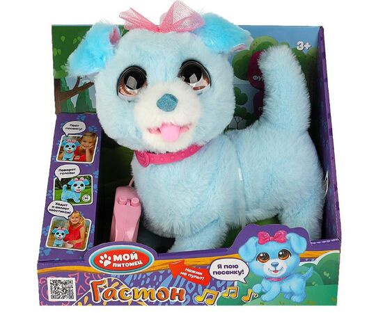 Интерактивный щенок с пультом-поводком "Гастон", 22 см