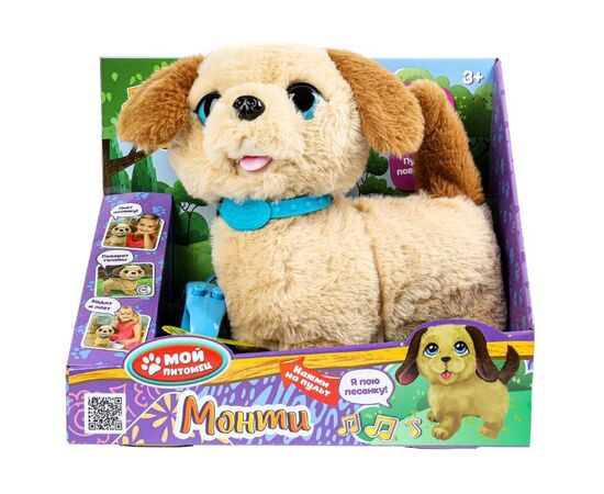Интерактивный щенок с пультом-поводком "Монти", 22 см