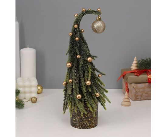 Искусственная елка "С шариками и блестками, в горшочке", золото