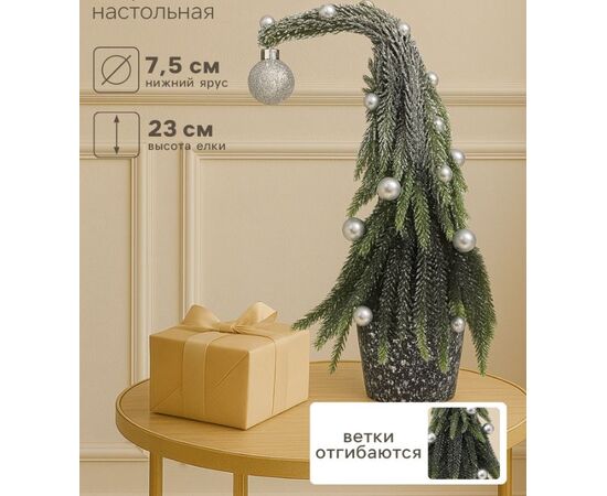 Искусственная елка "Заснеженная с блестками, в горшочке", 33 см