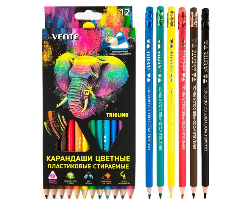 Карандаши цветные пластиковые, 12 шт