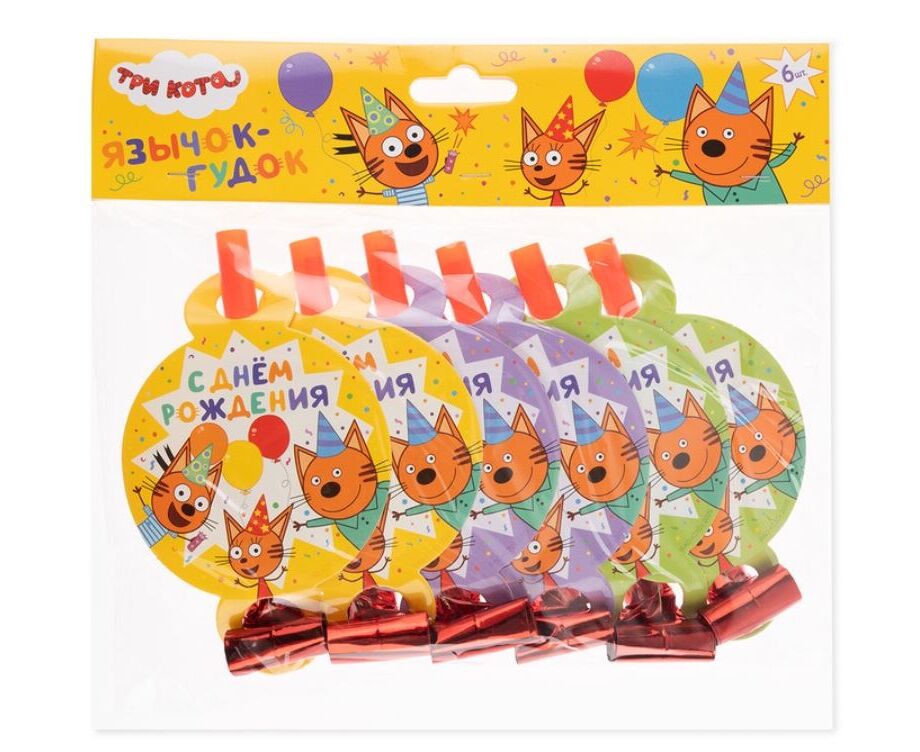 Карнавальные язычки-гудки "Три Кота. С Днем Рождения!" 6 штук