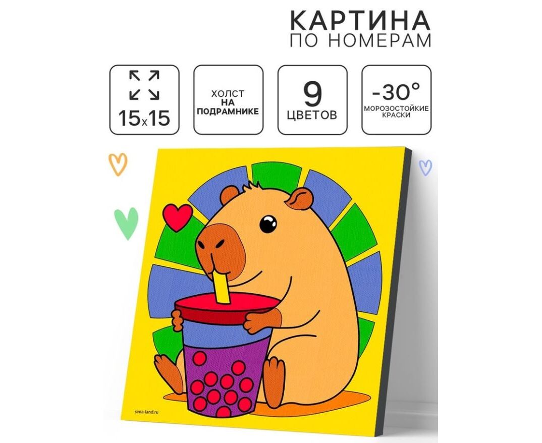 Картина по номерам "Капибара с коктейлем" 15 х 15 см