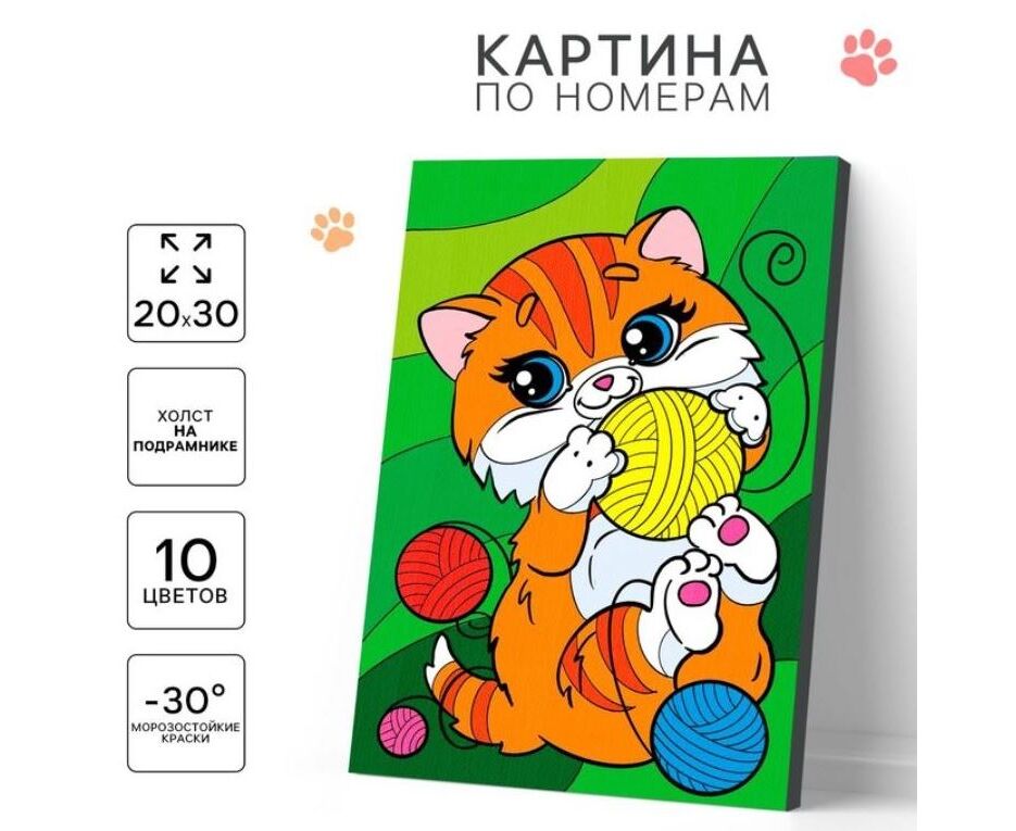 Картина по номерам на холсте "Котик с клубочками", 20 х 30 см