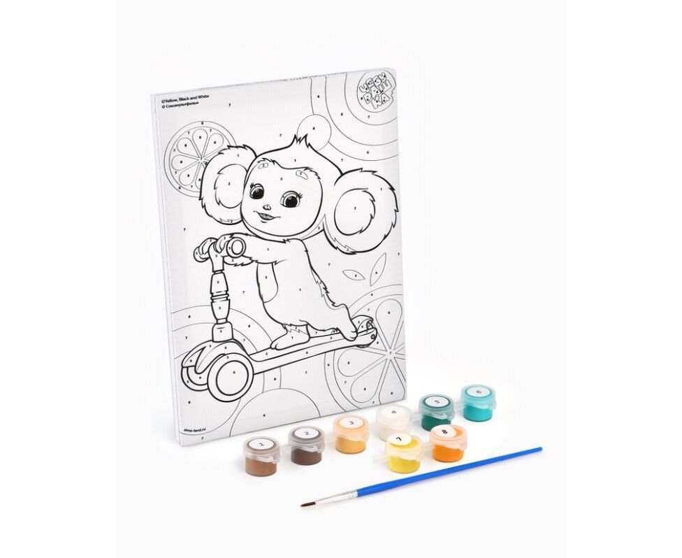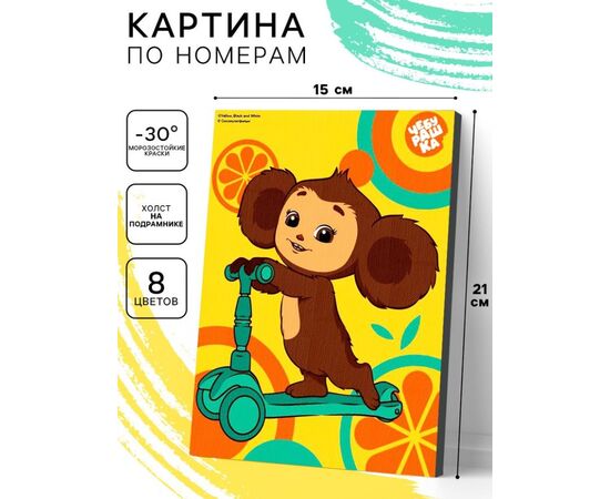 Картина по номерам с подрамником "Чебурашка на самокате", 21×15 см