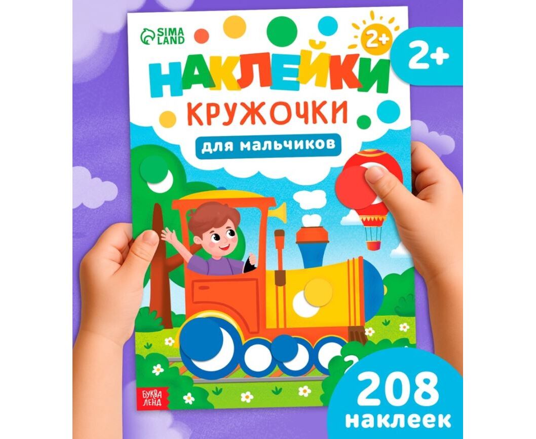 Книга детская с наклейками "Наклейки-кружочки для мальчиков", 208 наклеек